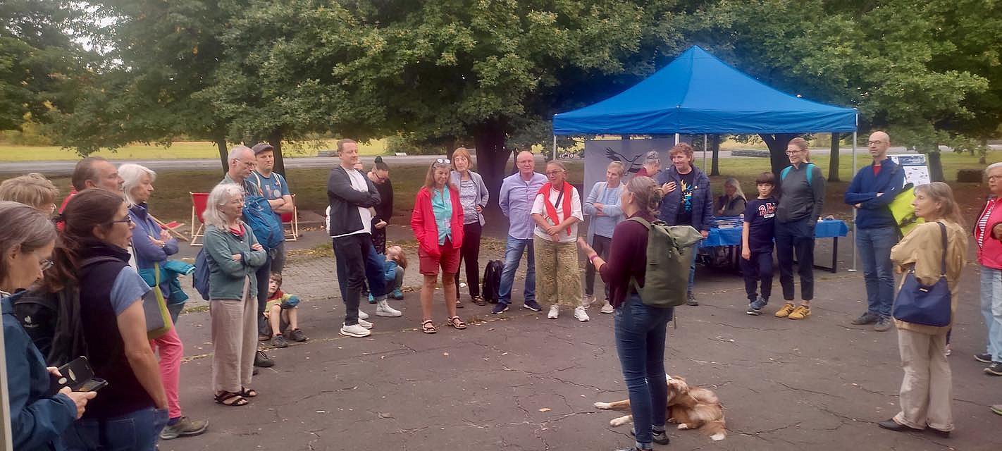 Am Samstag, 6. September 2025 fand im Rahmen der Internationalen Fledermausnacht 2025 unsere "Batnight" auf dem Alten Flughafen in Bonames statt. 40 interessierte Erwachsene und Kinder haben mit großem Interesse unserer Fledermausexpertin Ulrike gelauscht. Die Flattertiere ließen sich zwar erst spät blicken und hören, aber es waren dann doch einige da. Im grünen Klassenzimmer wurde der Film "Die Schönen der Nacht" gezeigt. Danke an alle Besucher für das große Interesse!